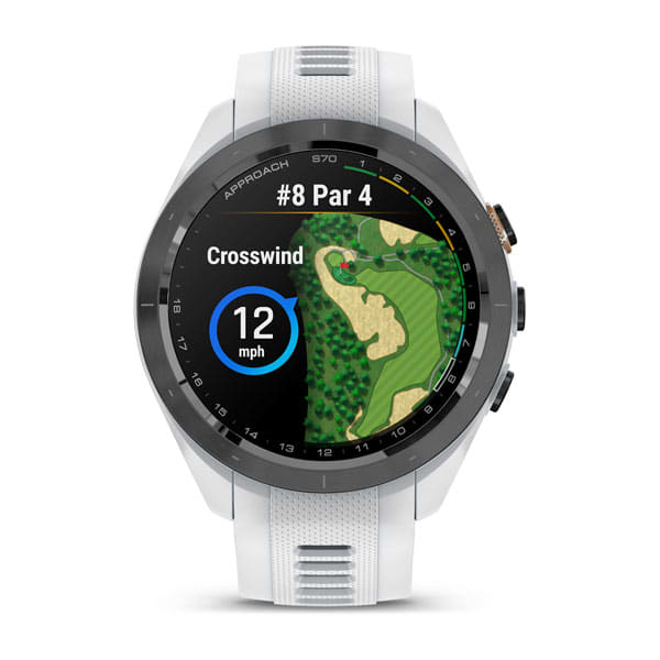 Garmin Approach S70, 42 mm, Black/Peach Ceramic Bezel with White Silicone Band