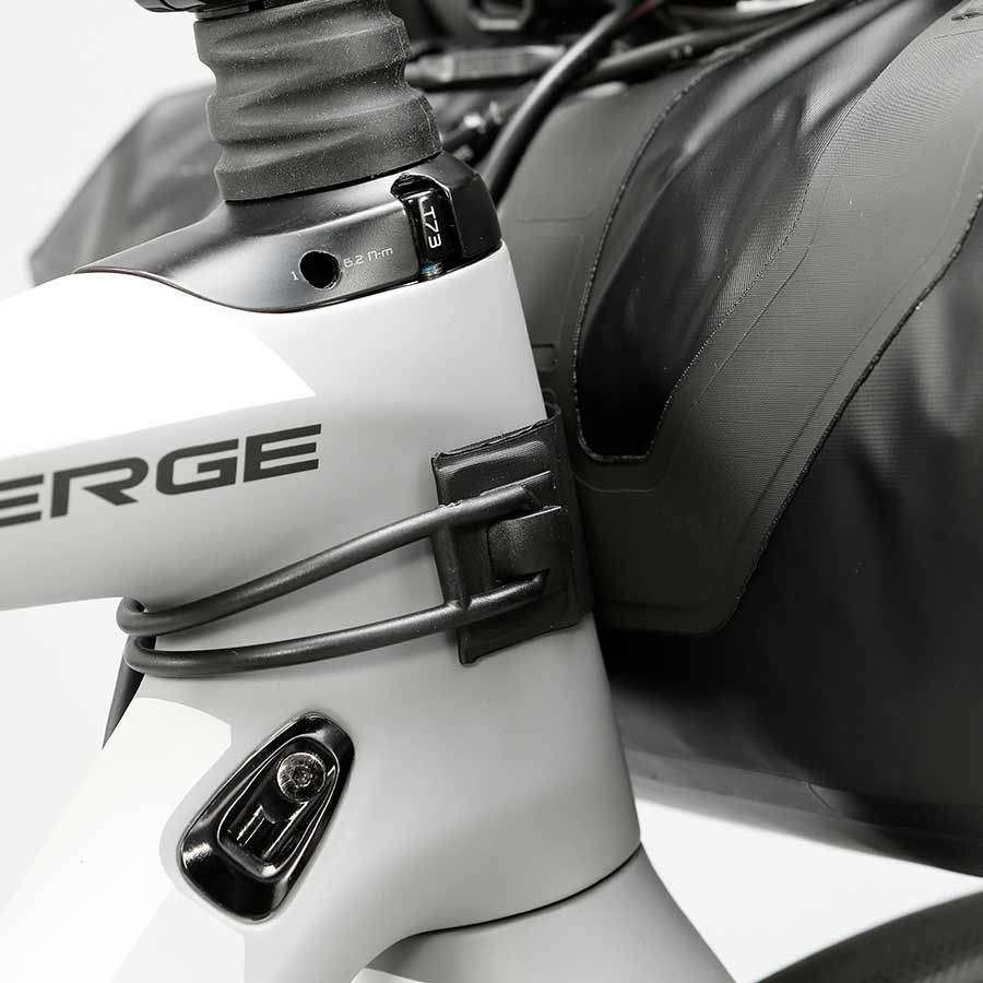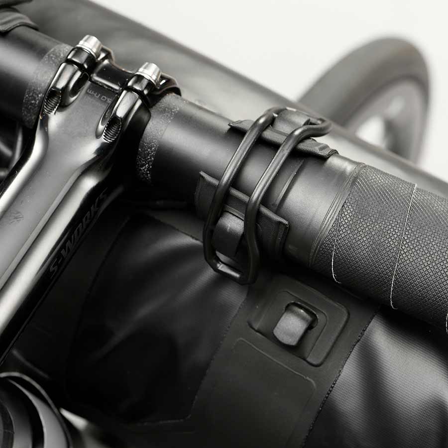 Fast-Fix straps allow fast and secure fixing to the handlebar and head tube. Large reflective areas. Full welded construction. Lightweight TPU/PU coated 420D nylon material. Hidden air removal valve. Easy-open buckles.