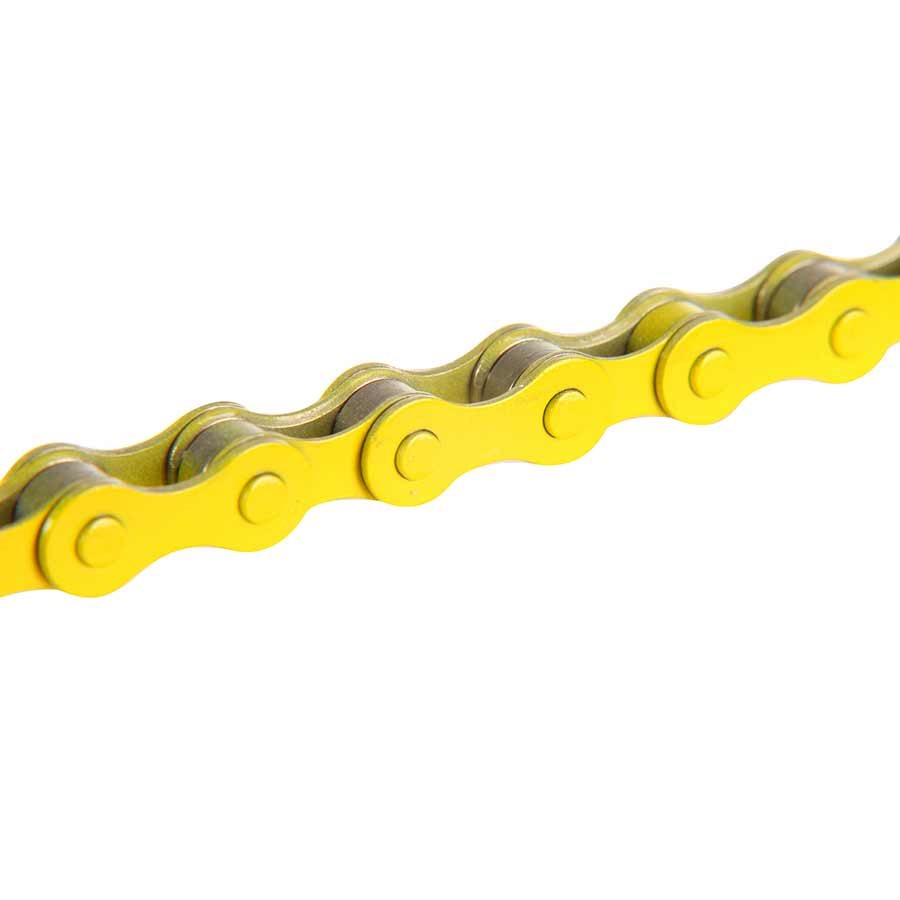 Heavy Duty 1/8'' chain for freestyle and street riding. Available in various powder coated colors. Standard plate thickness and pin riveting. Width: 8.6mm. 344g (112L).