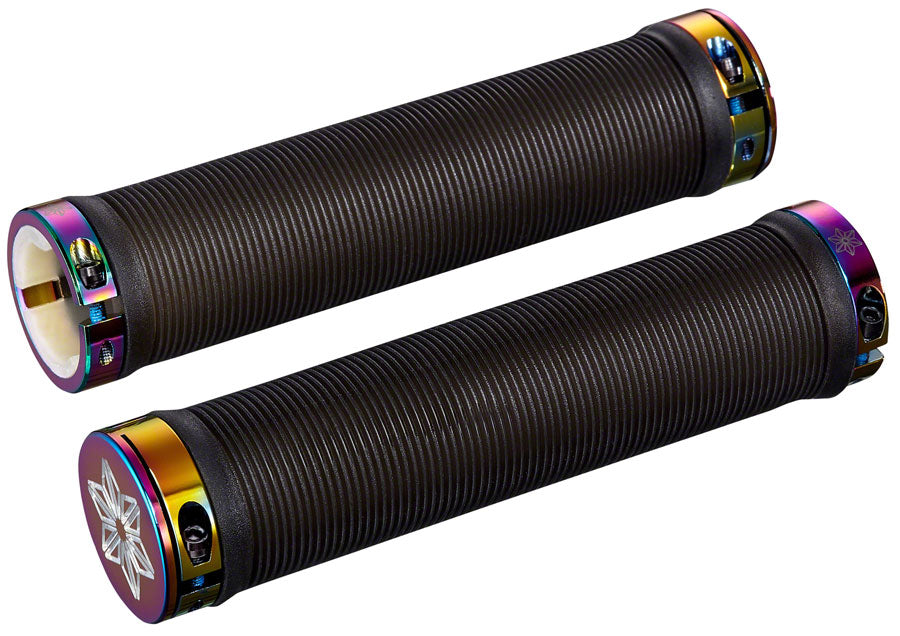 Supacaz RAD Grips Black Clear with Oil Slick DH Star Ringz