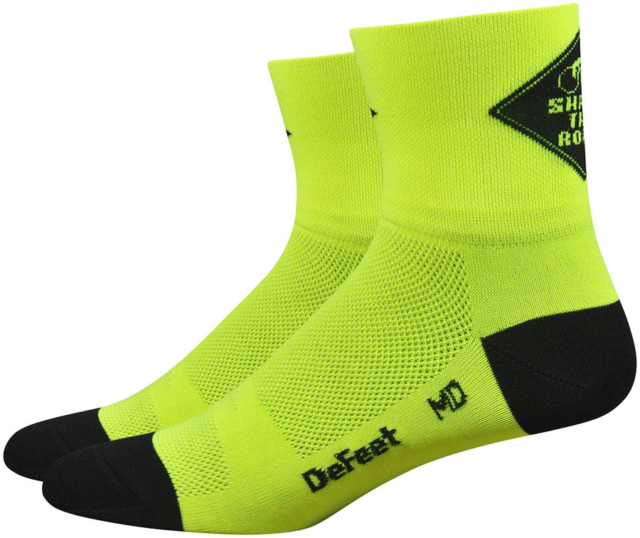 DeFeet Airaetor Share the Road Socks - 2 inch Hi-Vis Yellow/Black Medium