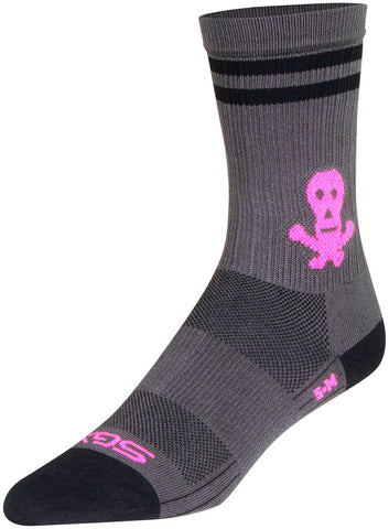 SockGuy SGX Skull and Bones Socks - 6 inch Gray/Black/Pink Large/X-Large