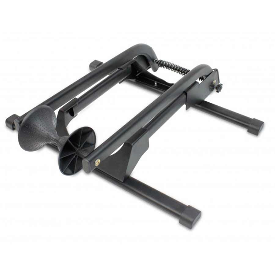 Fits any bike with 2.5 - 5” tires. Spring design saves space when not in use. Two support arms for maximum stability. Quick and easy assembly. Dimensions Approx: 19” x 16” x 19.75” (48 x 41 x 50 cm).