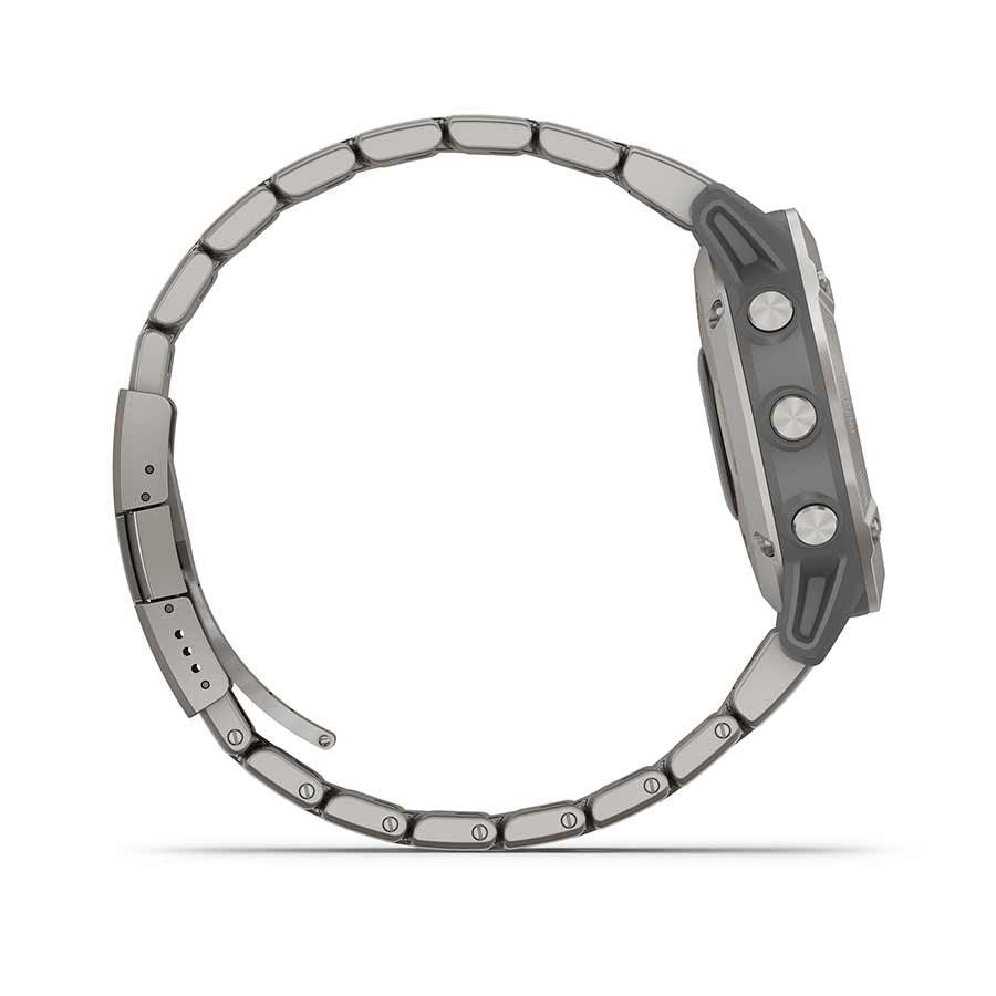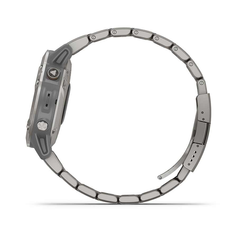 Rugged, sophisticated and performance design features an always-on 1.3” sunlight-readable display with bezels in stainless steel, titanium or diamond-like carbon coating. Enhanced wrist heart rate and Pulse Ox sensing of blood oxygen saturation to support advanced sleep monitoring and altitude acclimation. Advanced training features: PacePro for grade-adjusted pace guidance, environmentally adjusted VO2 max and training status estimates. Navigate with preloaded TOPO maps, ski maps for over 2,000 worldwide ski resorts, multiple global navigation satellite system (GPS, GLONASS and Galileo) support and built-in sensors for 3-axis compass, gyroscope and barometric altimeter. Connected features include smart notifications when paired with a compatible smartphone and Garmin Pay. Battery: up to 14 days in smartwatch mode, up to 10 h in GPS and music mode, up to 28 days in expedition GPS activity mode, and up to 48 days in battery saver watch mode.