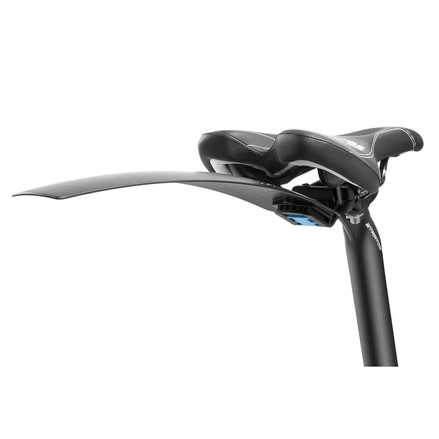 Unbreakable and lightweight. Quick-release attachment, fits on the saddle rail.