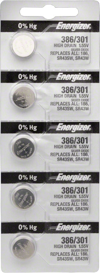 Energizer 386 / 301 Silver Oxide HighDrain Battery 1.55v Card of 5