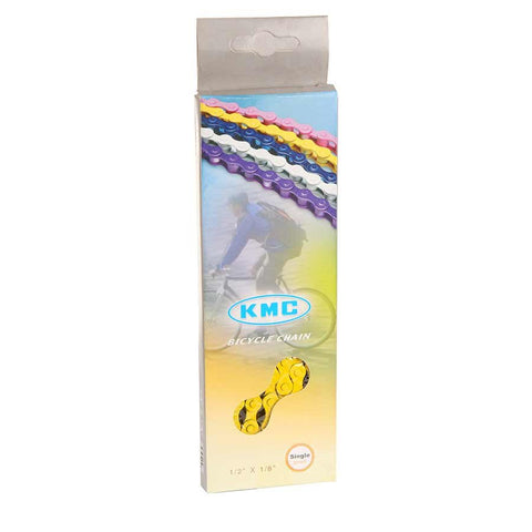 Heavy Duty 1/8'' chain for freestyle and street riding. Available in various powder coated colors. Standard plate thickness and pin riveting. Width: 8.6mm. 344g (112L).