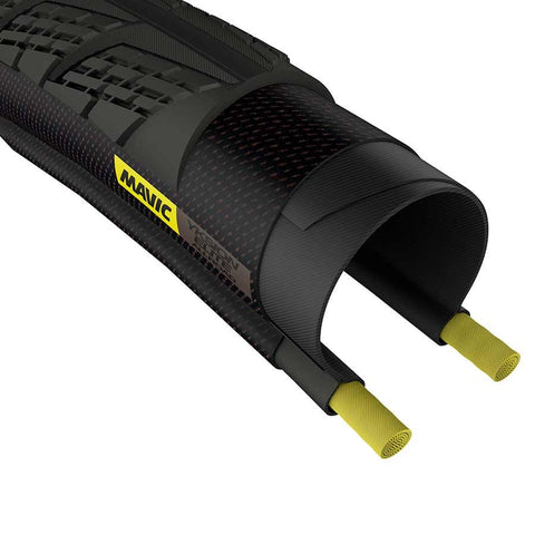 Breaking the boundaries of traditional road riding is now possible thanks to the new Yksion Elite Allroad tyre. Slick center line for fast rolling on paved roads with progressive side grooves to improve traction and grip on dirt. 120 TPI casing keeps weight low. Tubeless-ready construction removes the need for a tube. Bead-to-bead polyamide casing reinforcement protects rolling tread and sides. Compatible with Mavic tyre sealant, comes with 40 grams of sealant to prevent punctures. ONLINE SALES PROHIBITED UNLESS AUTHORIZED BY MAVIC.
