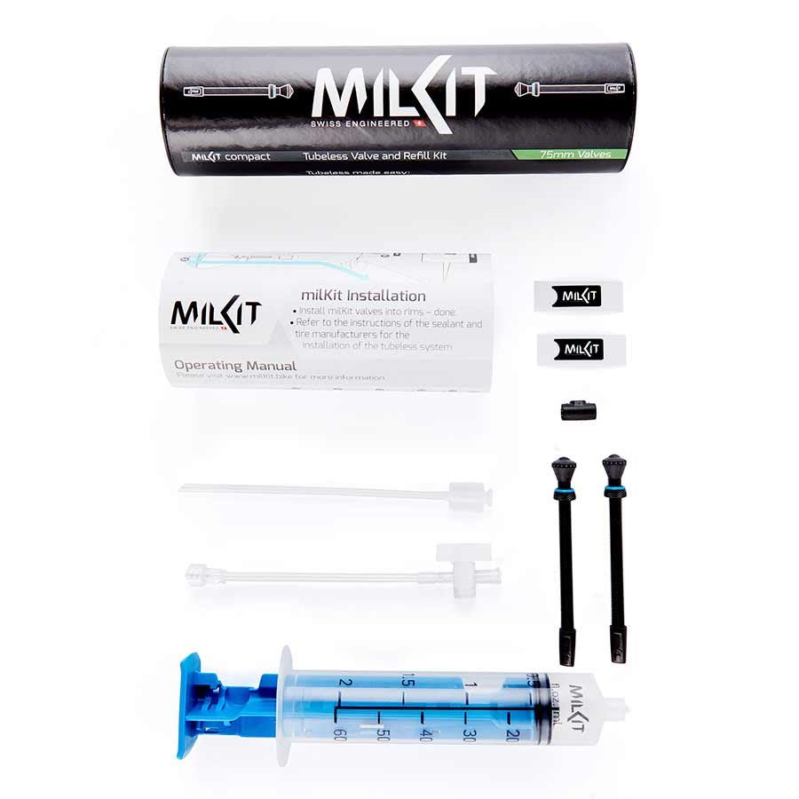 Description: Milkit , Compact Kit, Presta, 75mm, Includes 2 valves