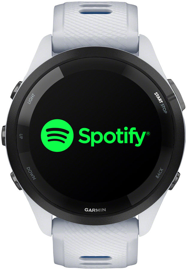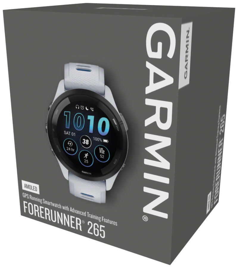 Garmin Forerunner 265 GPS Smartwatch - 46mm Black Bezel with Whitestone Case Whitestone/Tidal Blue Silicone Band
