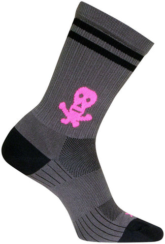 SockGuy SGX Skull and Bones Socks - 6 inch Gray/Black/Pink Large/X-Large