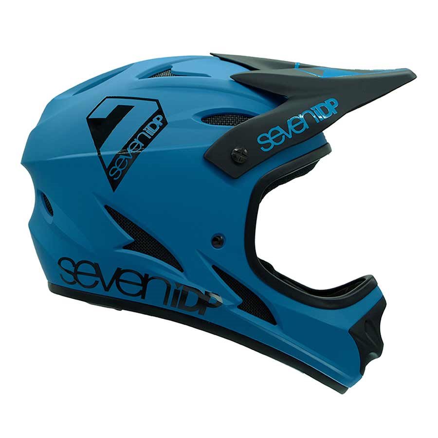 Lightweight polycarbonate shell full face protection. 17 vents provide cool air intake and heat exhaust. Foam padded internal muzzle. Large eye port for greater field of vision and improved goggle fit. Adjustable peak. Mesh backed covered vents stop debris getting through. Certified : CPSC Bike. S: 55-56cm, M: 57-58cm, L: 59-60cm, XL: 61-62cm.