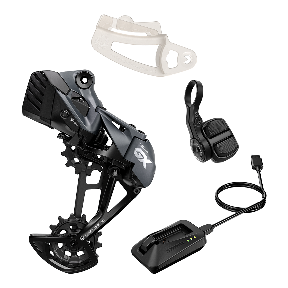 GX Eagle AXS Upgrade Kit (Rear derailleur with protector, Battery, POD Controller w/discrete Clamp, Powerlock, Charger/Cord, Chain Gap Tool, SRAM Multitool)