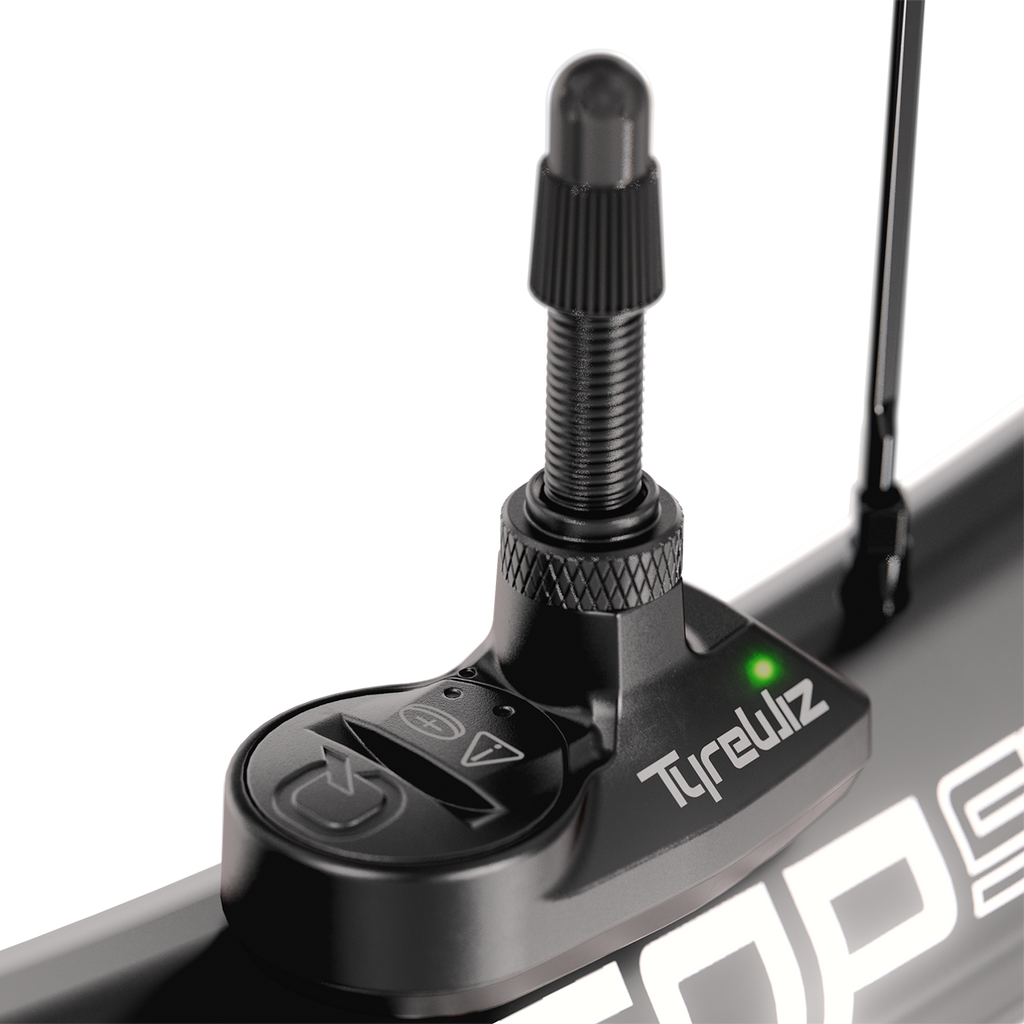 SRAM Quarq TyreWiz 2.0 Air Pressure Sensor for Presta Valve (included 2 sensors w/ batteries, 2 rubber bumpers and a rim depth guage) - Valves are not included